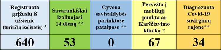 - 14 asmenų baigė savarankišką izoliaciją namuose, 20 pradėjo.