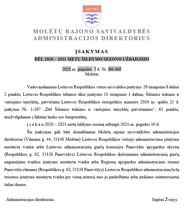 Gegužės 10 d. Molėtų rajone baigiamas šildymo sezonas.
