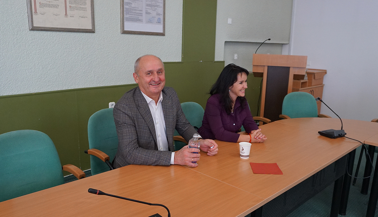 Rugsėjo 30 d. Molėtuose lankėsi ir su savivaldybės vadovais susitiko Ukrainos Žitomiro srities atstovų delegacija. Ji atvyko, tęsiant ne vienerius metus trunkantį Ukrainos Sergejaus Koroliovo kosmonautikos muziejaus bendradarbiavimą su Lietuvos etnokosmologijos muziejumi. Taip pat Molėtų savivaldybė yra pasirašiusi bendradarbiavimo sutartį ir palaiko ryšius su Žitomiro srities Romanovo savivaldybe. Susitikime dalyvavo Molėtų meras Saulius Jauneika, mero pavaduotoja Vaida Saugūnienė, Administracijos direktorius Sigitas Žvinys, Etnokosmologijos muziejaus direktorius Linas Šmigelskas, Ukrainos svečiai Žitomiro srities tarybos pirmininko pavaduotojas dr. Vladimiras Širma, S. Koroliovo nacionalinio muziejaus generalinė direktorė dr. Irina Dyačiuk, skyriaus vadovė Irina Višneveckaja, Žitomiro srities tarybos nariai Liudmila Kicak ir Andrėjus Kovaliovas. S. Jauneika pristatė svečiams Molėtų rajoną, savivaldybės prioritetus, pastaraisiais metais įvykusias permainas savivaldos, švietimo, ekonominėje, gyventojų užimtumo ir kitose srityse. Svečiai taip pat domėjosi narystės Europos sąjungoje privalumais, savarankiškai bei su užsienio parneriais įvykdytais ir planuojamais projektais. Dr. V. Širma papasakojo apie Ukrainoje vykstančią valdymo ir administracinio suskirstymo, galių perdavimo savivaldybėms, švietimo, sveikatos reformas, ekonominio gyvenimo aktualijas, taip pat - tebesitęsiančio karo problemas, kurios atima daug šios šalies resursų, žmonių gyvybių, bet šalis ryžtingai eina savarankiškumo, vieningos teritorijos išlaikymo ir pažangos visose srityse siekimo keliu. Aptartas tolesnis Molėtų bendradarbiavimas su buvusiu Romanovo rajonu, kuris administracinės reformos kelyje tapo savarankiškesne teritorine savivaldybe. S. Koroliovo muziejaus direktorė dr. I. Dyačiuk pasidžiaugė bendradarbiavimu su Lietuvos etnokosmologijos muziejumi, kurio dėka Molėtų vardas gerai žinomas Žitomire, o Lietuvoje rengiamos Ukrainos muziejaus eksponatų parodos, pakvietė merą ir savivaldybės atstovus apsilankyti S. Koroliovo muziejuje. Kvietimas buvo mielai priimtas, o svečiams dar parodyti keli Molėtų krašto turizmo išteklius bei draugišką aplinkai verslą pristatantys video filmai. Toliau svečiai išvyko viešnagės į Lietuvos etnokosmologijos muziejų. Paskutinis atnaujinimas: 2021-09-30 23:03:22 |