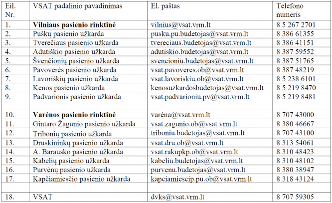 Nuo trečiadienio Seimo sprendimu įvedus nepaprastąją padėtį įsigaliojo draudimas atvykti į pasienio ruožo su Baltarusija teritoriją, kuriame tokia padėtis įvesta. Yra nemažai asmenų kategorijų, kurioms neteks rūpintis papildomais leidimais patekti į ruožą. Yra ir kategorijų, kurios išimtiniais atvejais galės patekti į pasienio ruožą gavus VSAT leidimą. Draudimas netaikomas asmenims, gyvenantiems, turintiems nekilnojamojo turto pasienio ruožo su Baltarusija teritorijoje, kur įvesta nepaprastoji padėtis, ir turintiems tai patvirtinančius dokumentus. Įgyvendinant minėto Seimo sprendimo nuostatas leidimas patekti į pasienio ruožą prie valstybės sienos su Baltarusija suteiktas šiais atvejais: - pasienio ruožo gyvenvietėse dirbantiems ir besimokantiems asmenims; - asmenims, vykdantiems ūkinę, komercinę, tam tikrų objektų (pvz., kelių, ryšio linijų ir pan.) priežiūros veiklą pasienio ruože esančiose gyvenvietėse ar pasienio ruože; - asmenims, vykstantiems magistraliniais, krašto ar rajoniniais keliais ar geležinkeliais, einančiais ar kertančiais pasienio ruožą; - asmenims, kertantiems valstybės sieną per pasienio kontrolės punktus ar vykstantiems į darbo vietą, esančią pasienio kontrolės punkte; - vykdant valstybės sienos apsaugos objektų įrengimą; - vykdant Lietuvos valstybės ir savivaldybės institucijų ir įstaigų funkcijas; - vykstant į pasienio ruožo gyvenvietes paslaugoms teikti ar įsigyti; - vykstant į artimo giminaičio laidotuves, slaugyti ligonį, pas tėvus arba artimus giminaičius. Šiais atvejais atskirai kreiptis į VSAT leidimo patekti į pasienio ruožą nereikia. Kitais išimtiniais atvejais, dėl kurių gali būti priimamas indvidualus sprendimas, reikia pateikti prašymą elektroniniu paštu VSAT Varėnos ar Vilniaus pasienio rinktinėms ar jų struktūriniams padaliniams. Jie bus nagrinėjami ir sprendžiama, ar suteikti leidimą patekti į pasienio ruožą. Asmenys, ketinantys patekti į pasienio ruožą ar esantys pasienio ruože, patikrinimą atliekančiam pareigūnui turi pateikti teisėtą buvimą ir atvejį, kai atskiro leidimo gauti nereikia, patekti į pasienio ruožą įrodančius dokumentus (pvz., darbo pažymėjimą, tam tikros įmonės vadovo pasirašytą dokumentą dėl darbų vykdymo tam tikroje teritorijoje, rangos darbų sutartį, asmenų ir transporto priemonių, kurie vykdo tam tikrus darbus pagal pasirašytas sutartis, teisėtą vykimą per valstybės sieną, giminystės ryšius, ligonio būklę, laidotuvių faktą įrodančius dokumentus ir kt.). Analogiškus įrodančius dokumentus elektroniniu paštu kartu su prašymu turi pateikti ir asmenys, besikreipiantys į VSAT padalinius dėl patekimo į pasienio ruožą išimtiniais atvejais. Taip pat siekiant užtikrinti minėto Seimo nutarimo dėl nepaprastosios padėties nuostatas yra uždrausta neteisėtai į Lietuvos teritoriją patekusių užsieniečių ir (ar) Lietuvos institucijų paskirtose užsieniečių apgyvendinimo vietose daryti garso įrašus, filmuoti ir fotografuoti. Užsieniečių apgyvendinimo vietose apribotas valstybės ir savivaldybės institucijų, įmonių, įstaigų, organizacijų, juridinių asmenų, juridinių asmenų filialų, atstovybių ar juridinio asmens statuso neturinčių asmenų atstovų ir fizinių asmenų patekimas. Toks apribojimas netaikomas institucijų, susijusių su materialinių priėmimo sąlygų suteikimu, sveikatos apsaugos paslaugų teikimu, viešosios tvarkos palaikymu, prieglobsčio procedūrų atlikimu, vertimo ir teisinių paslaugų teikimu, vaiko teisių apsaugos užtikrinimu, socialinės pagalbos ir švietimo paslaugų teikimu, darbuotojų patekimui apgyvendinimo vietos administratoriaus leidimu. Užsieniečių apgyvendinimo vietose taip pat apribojamas užsieniečių būriavimąsis, išskyrus vienos šeimos narius arba kai yra iš anksto suplanuota ir su apgyvendinimo vietų administratoriais suderinta veikla. Taip pat apribotas ryšio priemonių naudojimas, nustačius grėsmes. Apgyvendinimo vietos administratoriaus sprendimu mobilieji įrenginiai laikinai gali būti paimami. Asmenims, nepaprastosios padėties galiojimo laikotarpiu pažeidusiems nustatytus reikalavimus, numatyta administracinė atsakomybė. Ji bus taikoma už valstybės sienos kirtimo ir patikrinimo arba pasienio teisinį režimą reglamentuojančių teisės aktų pažeidimus arba (ir) pareigūnų teisėtų reikalavimų nevykdymą pagal Administracinių nusižengimų kodekso 536 straipsnį ir 506 straipsnio 41 dalį. Valstybės sienos apsaugos tarnybos prie LR VRM Varėnos ir Vilniaus pasienio rinktinių ir jų struktūrinių padalinų sąrašas