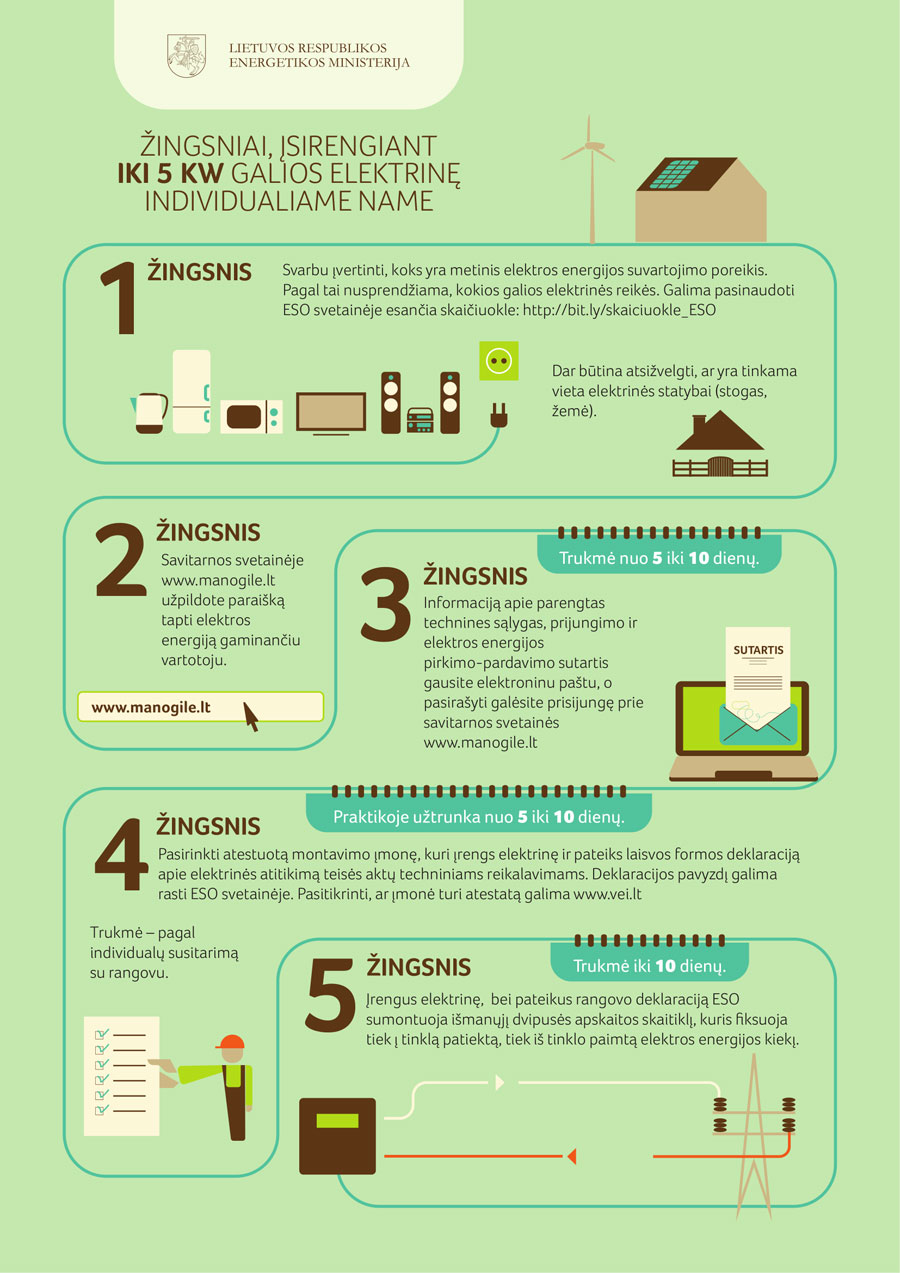 2. Mažoms iki 10 kW galios saulės elektrinėms įrengti