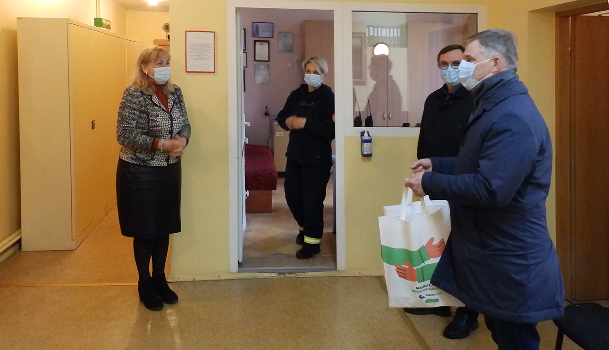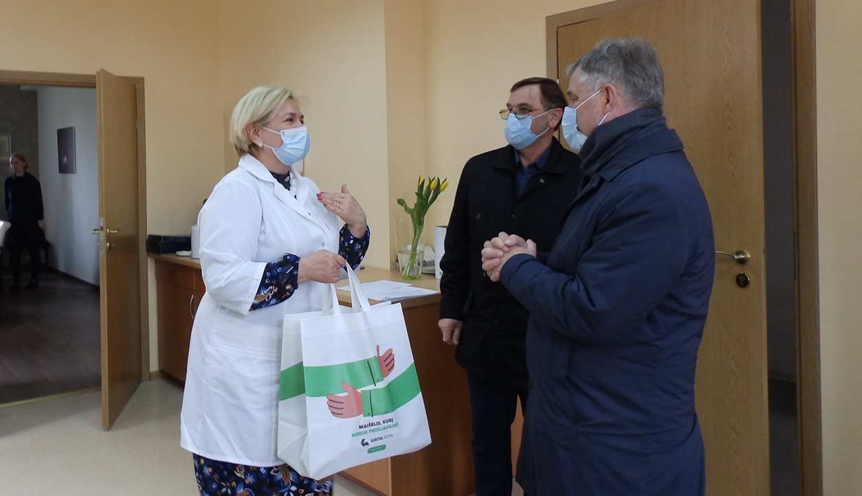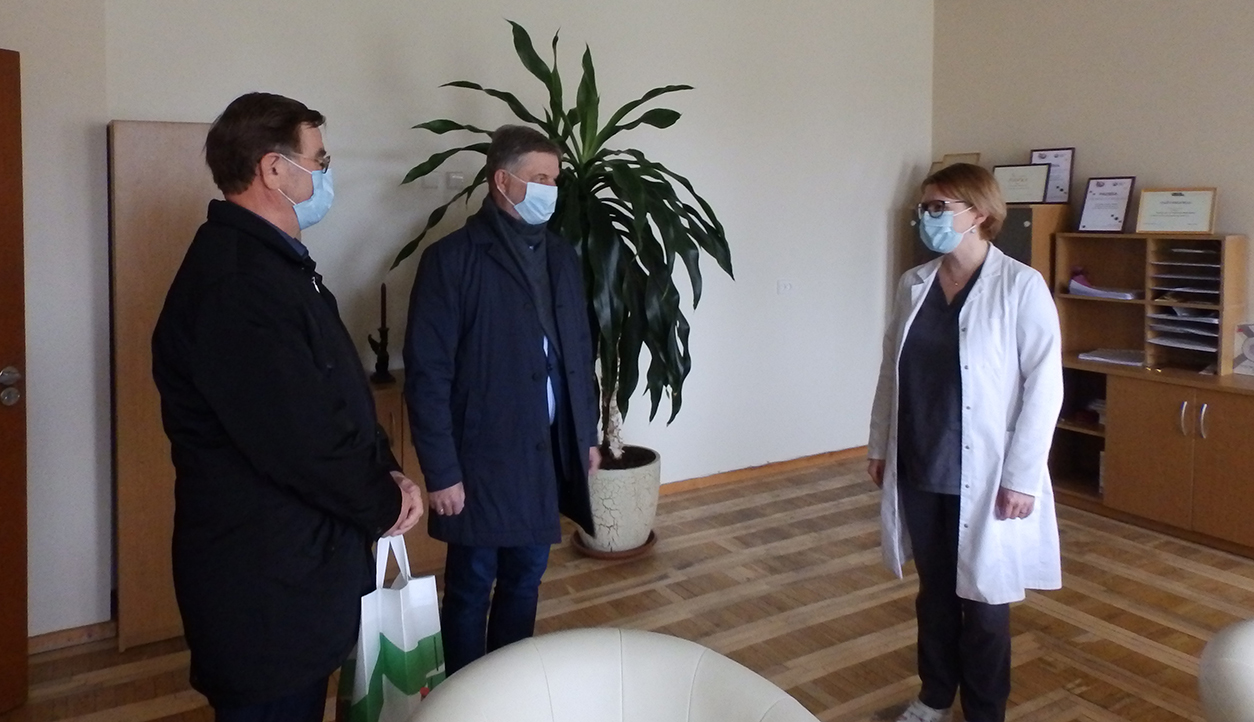 Šiandien meras Saulius Jauneika ir Administracijos direktoriaus pavaduotojas Steponas Šanteriovas aplankė Molėtų rajono sveikatos įstaigas ir Lietuvos medicinos darbuotojų dienos proga pasveikino jų vadovus bei paprašė perduoti pačius šilčiausius linkėjimus visiems jų kolegoms ir bendradarbiams, įteikė dovanų -saldžių vaišių šventiniam stalui. Taip pat trumpuose pokalbiuose neapsieita ir be einamųjų reikalų pasvarstymo, kaip suteikiama pagalba sergantiems žmonėms, kaip galima paspartinti skiepijimą nuo Covid-19, kuris didžiausia dalimi priklauso nuo gaunamos vakcinos kiekio, kaip atliekami tyrimai, kaip sekasi visai medikų bendruomenei atlaikyti tebesitęsiančios pandemijos iššūkius. Linkėjo visiems stiprybės ir sveikesnių pacientų. Paskutinis atnaujinimas: 2021-04-27 12:07:57 |