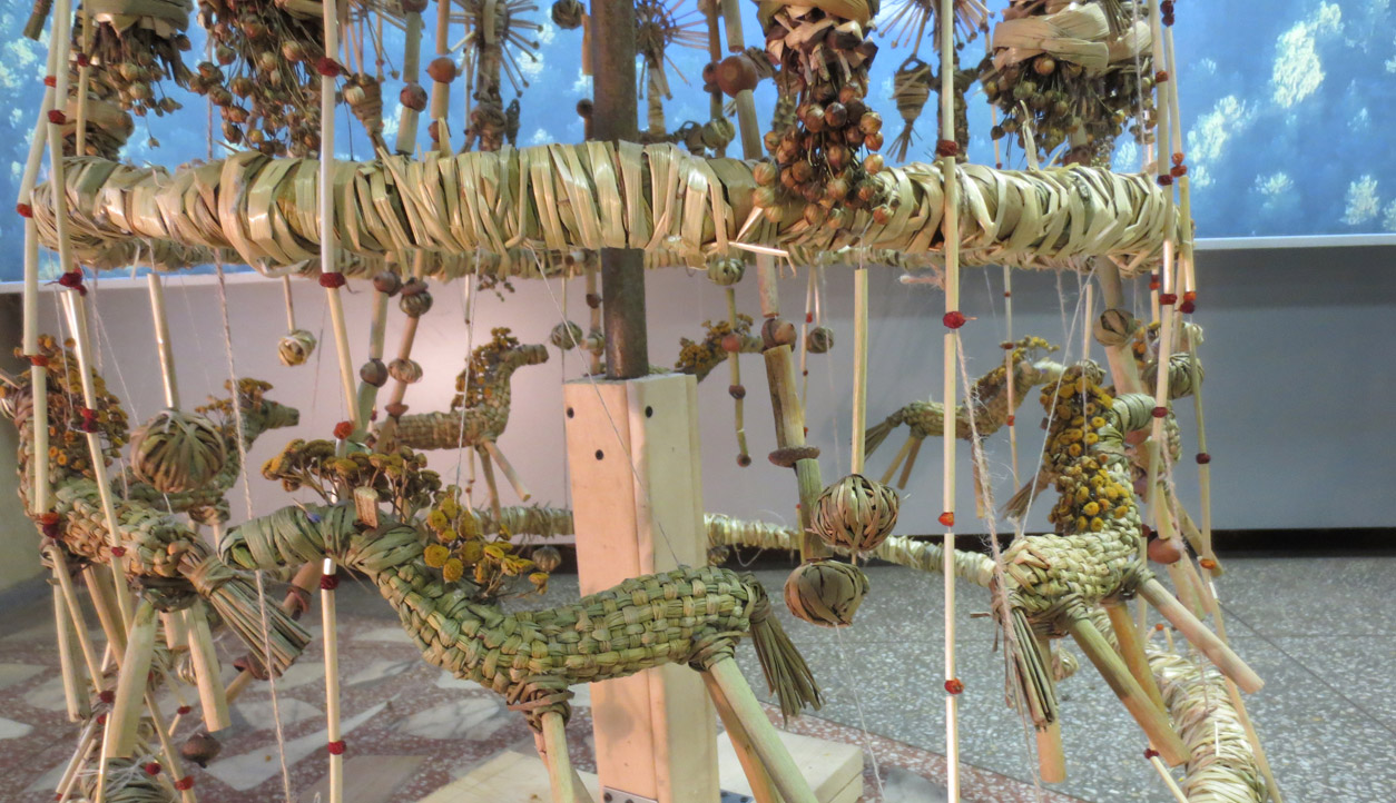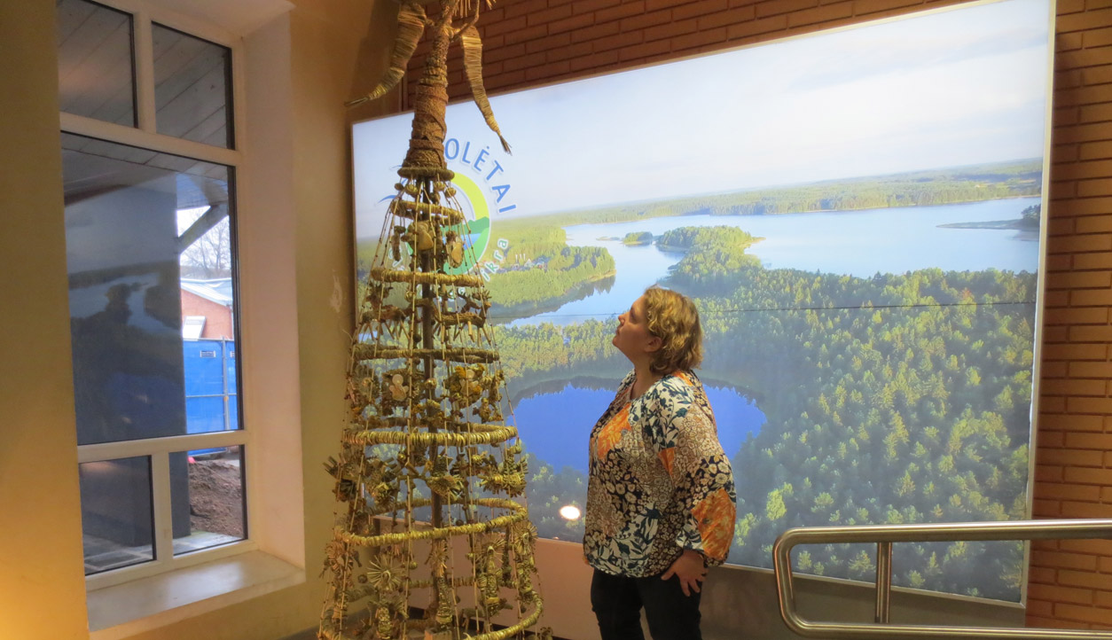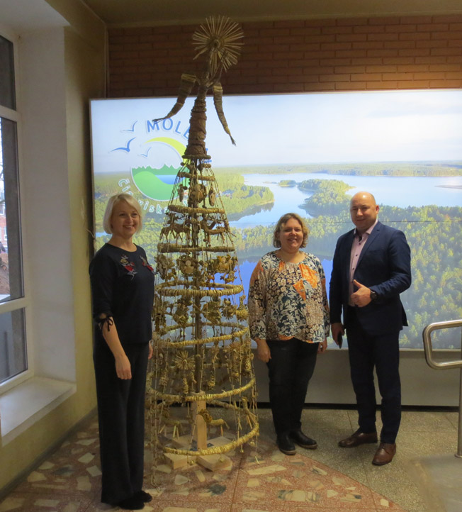 Pati Molėtų savivaldybė pasipuošė netradicine eglute - Žolynų skulptūra, kurią sukūrė menininkė, keramikė ir tautodailininkė Viktorija Bitinaitė Stankevičienė. Tarsi arkangelo skraistę septyniais žiedais į viršų kylančią kompoziciją sudaro tautosakos motyvai ir elementai: elniai devyniaragiai, angeliukai, žirgeliai, paukščiai, saulutės, viršūnėje - arkangelas, pučiantis dūdą. Visa tai ant lazdyno pagrindo surišta iš meldų, vikšrių, šiaudų, linų, papuošta smilgomis, bitkrėslėmis, kraujažolėmis, šermukšnių uogomis ir ąžuolo gilėmis. Daugiau nuotraukų mūsų FB paskyroje: Miesto eglutės įžiebimas Savivaldybės eglutė